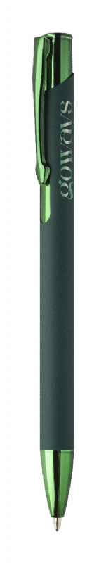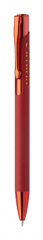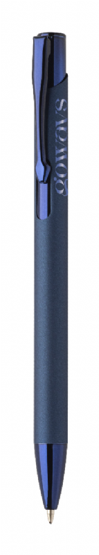 Kemijska olovka od recikliranog aluminija s gumiranim tijelom i sjajnim metalnim završnim dijelovima u boji. Sa posebnim premazom za zrcalno graviranje koje odgovara metalnim dijelovima. S plavim punjenjem.
